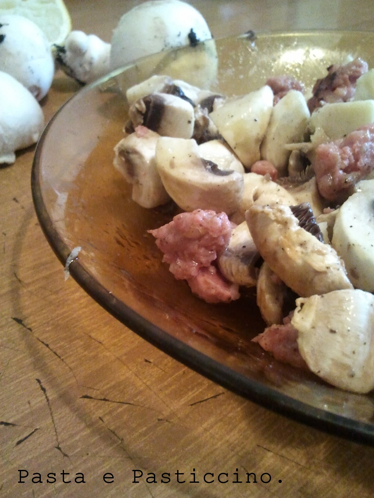 Sguardo fisso nel frigorifero, e poi vedi loro, dei funghetti champignon e della salsicetta bella fresca che ti dice mangiami,fallo sto sforzo anche se e' domenica mattina!.